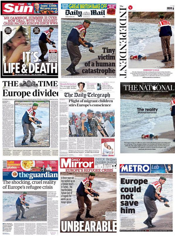 9月2日,3歲男童遺體被沖上土耳其海岸的照片讓整個歐洲心碎。照片中的男孩身穿紅色T恤和短褲,面部朝下趴在沙灘上。